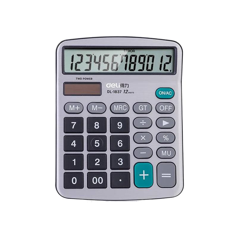 得力(deli)双电源计算器 1837 12位 银色(单位:个)