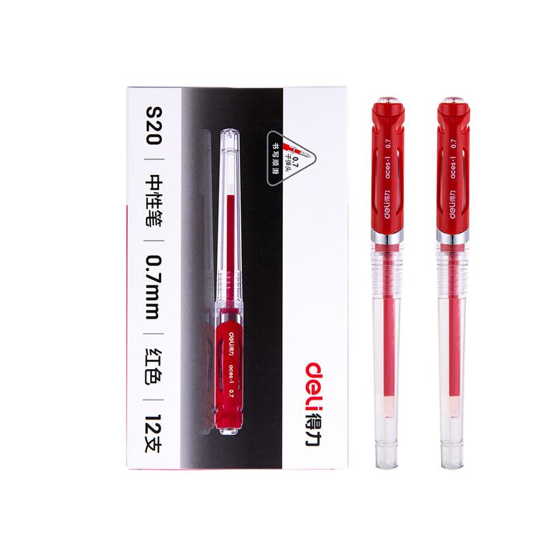 得力(deli)中性笔 S20 0.7mm 12支/盒 红色 最少起订量为盒(单位:盒)