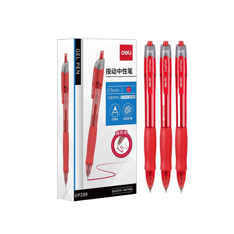得力(deli)中性笔 DP208 0.5mm 红色 12支/盒(单位:支)