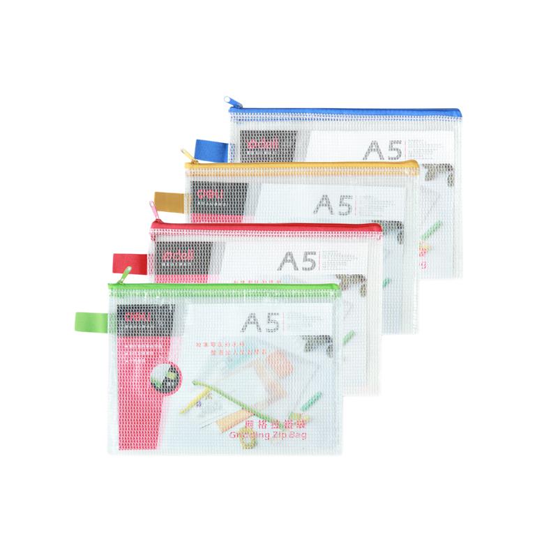 得培力 透明文件袋 D70 A4 网格拉链 颜色随机 10个/包(单位:个)