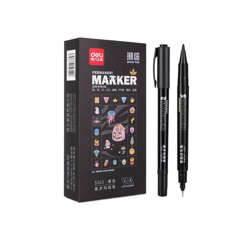 得力(deli)勾线笔 S563 粗头1.0mm 细头0.5mm 12支/盒 最少起订量为盒(单位:盒)