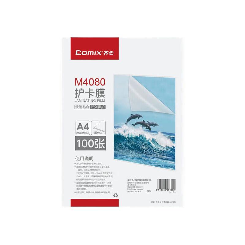 齐心(COMIX)护卡膜 M4080 A4 8丝 100张/包(单位:包)