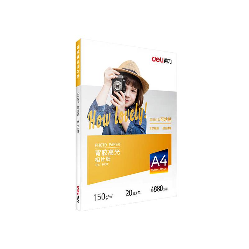 得力(deli)高光相纸 ZX001 A4 200g/m2 20张/包 白色(单位:包)