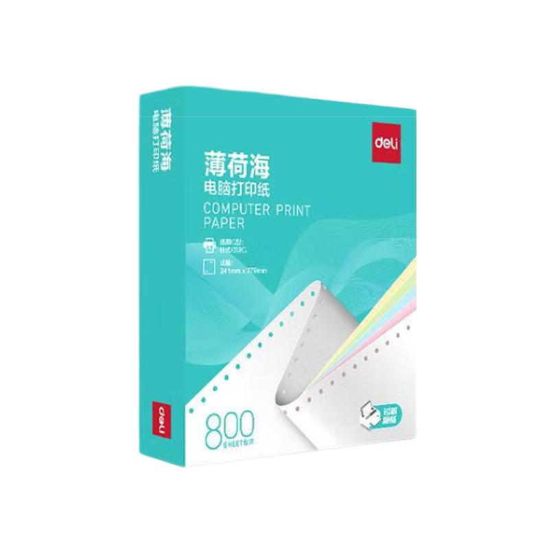 得力(deli)打印纸 BBH241-1 一联 800页/盒 彩色 不可撕边(单位:盒)