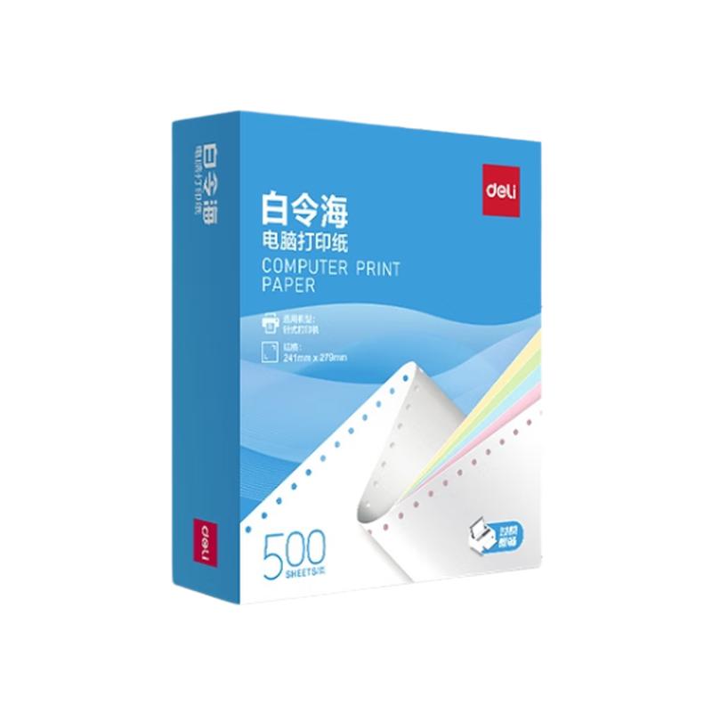得力(deli)打印纸 BLH241-2-1/2CS 二联 500页/盒 彩色 可撕边(单位:盒)