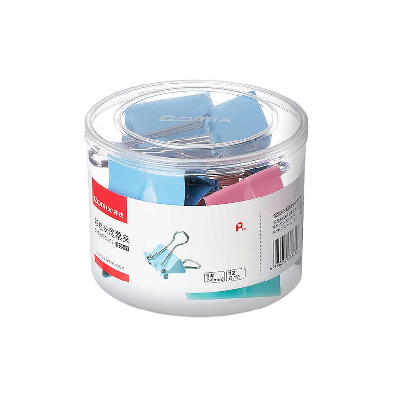 齐心(COMIX)长尾夹 B3631 大号 1#50mm 12只/筒 彩色(单位:筒)