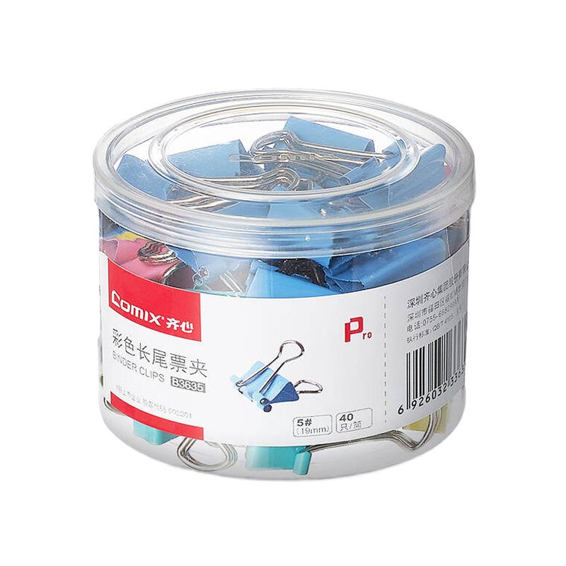 齐心(COMIX)长尾夹 B3635 小号5#19mm 40只/筒 彩色(单位:筒)