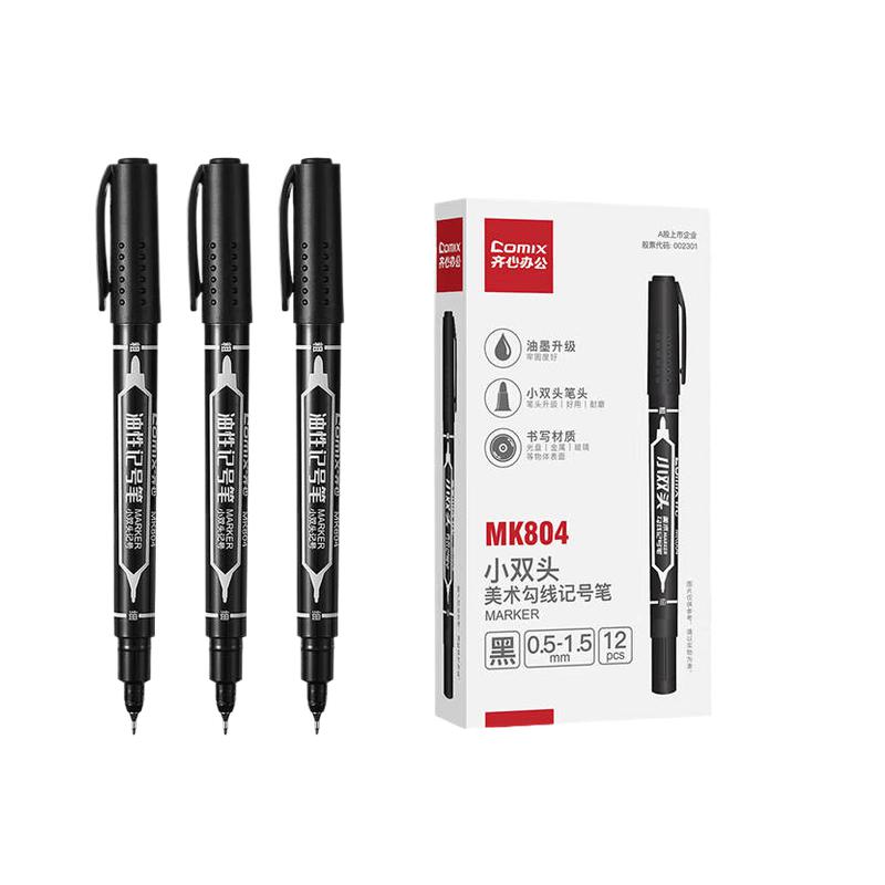 齐心(COMIX)小双头记号笔 MK804 0.5-1.5mm 黑色 12支/盒(单位:支)