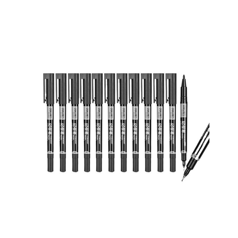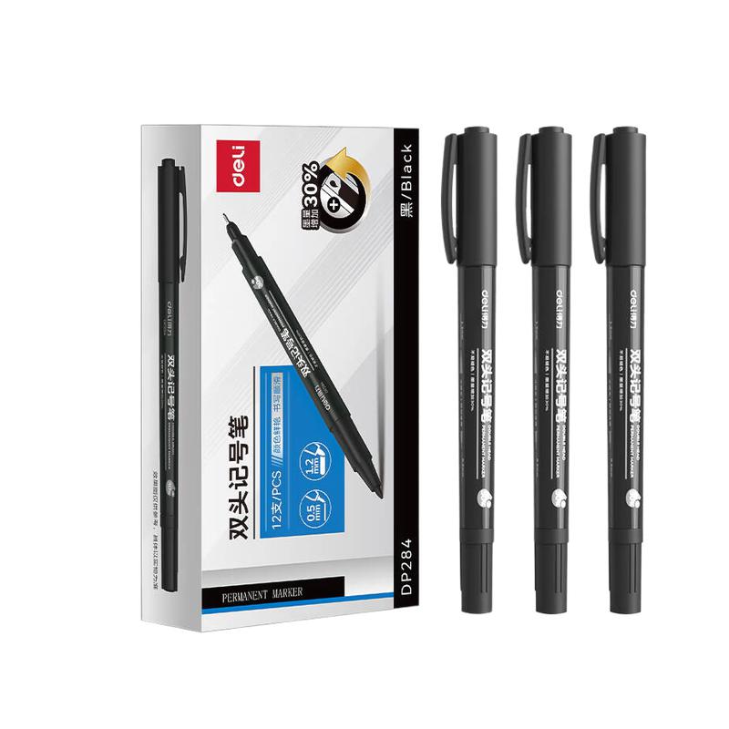 得力(deli)小双头记号笔 DP284 12支/盒 黑色 粗头1.2mm 细头0.5mm(单位:支)
