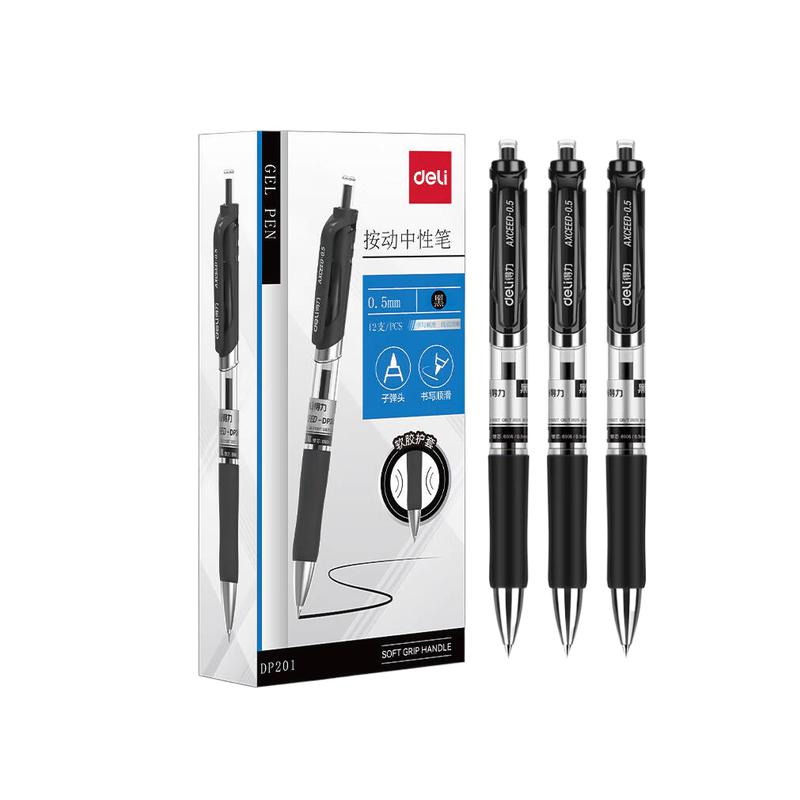 得力(deli)按动中性笔 DP201 0.5mm 黑色 12支/盒(单位:支)