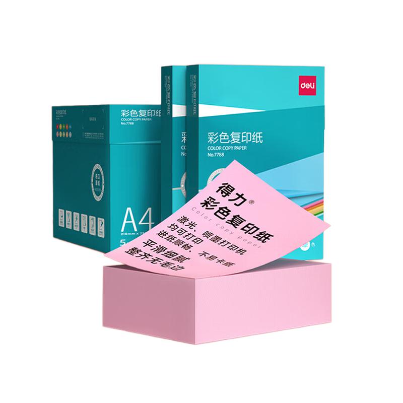 得力(deli)复印纸 7788 A4 80g 500张/包 浅粉色(单位:包)