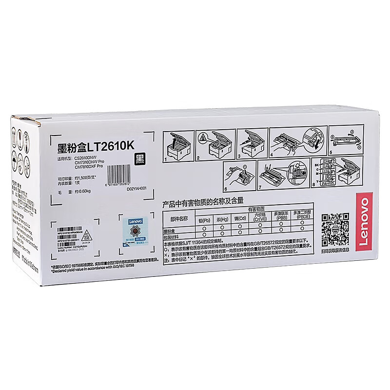 联想(Lenovo)粉盒 原装LT2610K 黑色 适用于CM7310dnw pro7810dxf pro CS2610DNW(单位:支)
