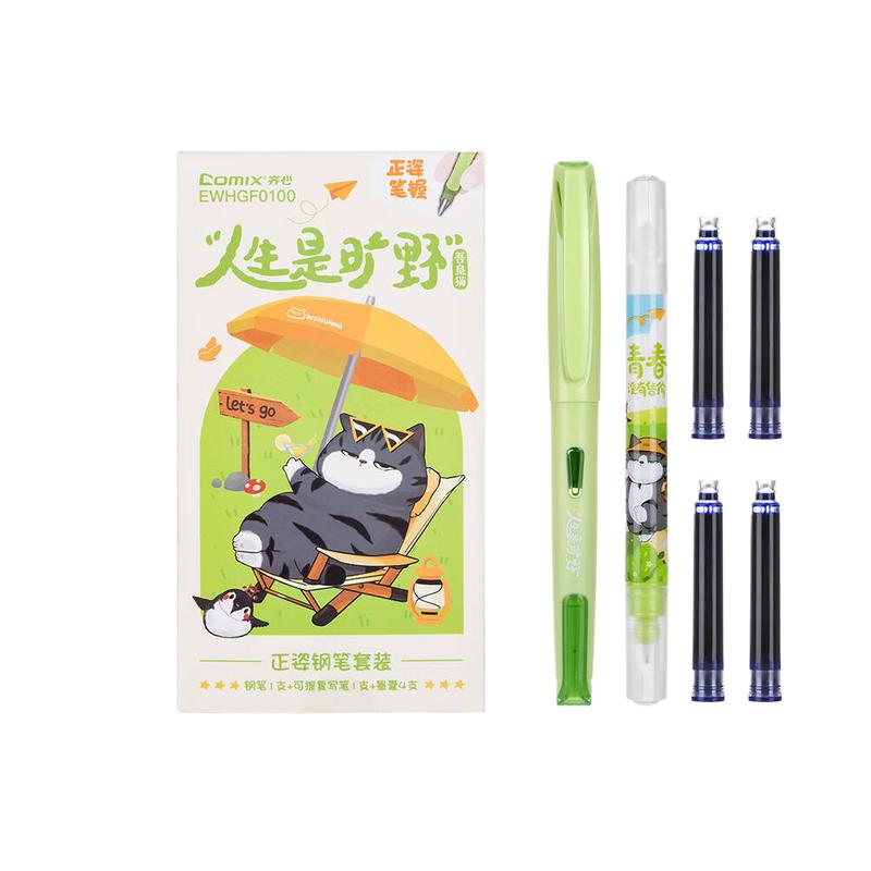 齐心(COMIX)可擦钢笔 EWHGF0100 0.38mm 蓝色 含4支墨囊(单位:套)