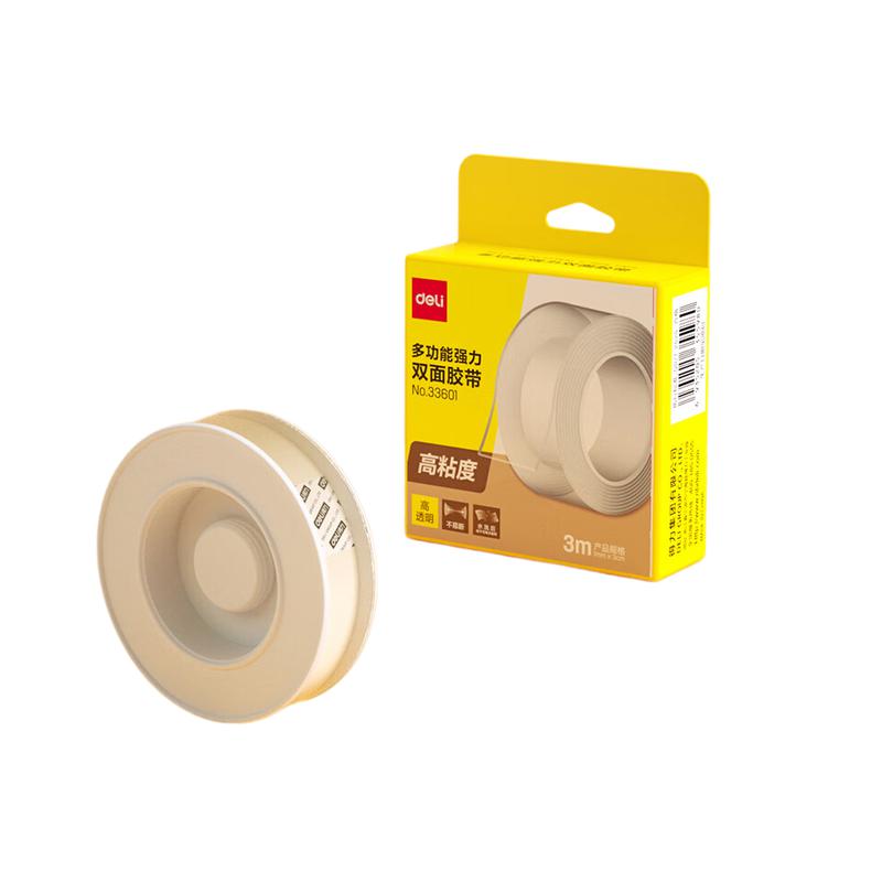 得力(deli)双面透明胶带 33602 50mm*3m*1mm(单位:卷)