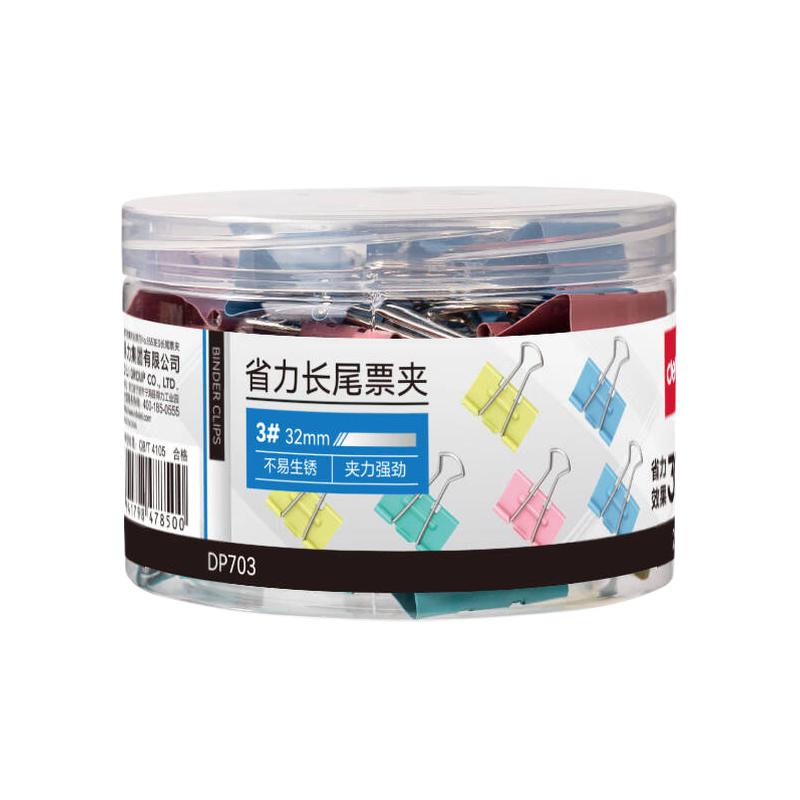 得力(deli)长尾票夹 DP703 32mm 混色 24个/筒(单位:筒)