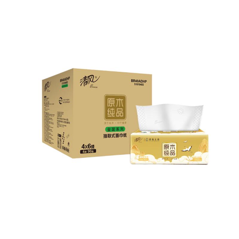 清风(APP)抽纸 BR40ADHP 4层 90抽 4包/提 6提/箱 最少起订量为箱(单位:箱)