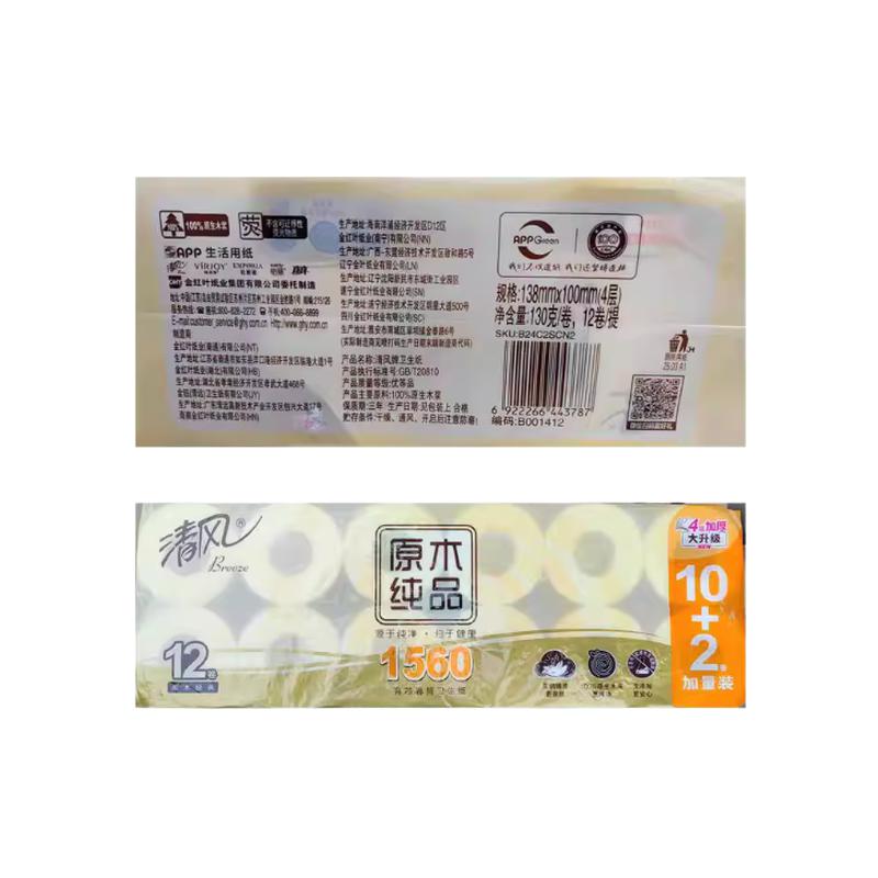 清风(APP)小卷纸 B24C2SCN2 有芯 升级4层130克/卷 12卷/提 10提/件 原木纯品 最少起订量为件(单位:件)