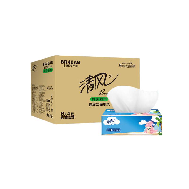 清风(APP)抽纸 BR40AB 100抽 3层 6包/提 4提/箱 最少起订量为箱(单位:箱)