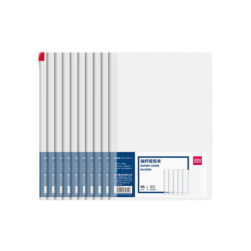 得力(deli)拉杆夹 63108 A4 8mm 透明 10个/包 最少起订量为包(单位:包)
