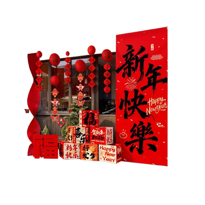 九言喜品 新年套装 条幅 2.1*1.1m 灯笼 2.5m 堆堆盒 立体福字 挂饰套装(单位:套)