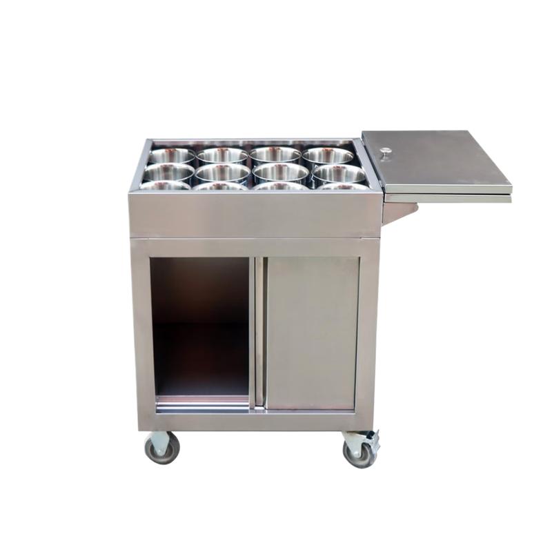 海斯迪克 调料车 四通加厚拉门款 带轮 含12个调料罐 304不锈钢定制(单位:个)