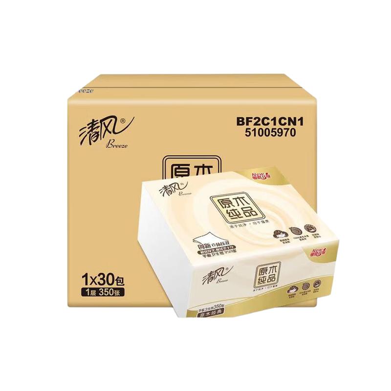 清风(APP)平板刀切纸 BF2C1CN1 单层 350抽/包 30包/箱 最少起订量为包(单位:包)