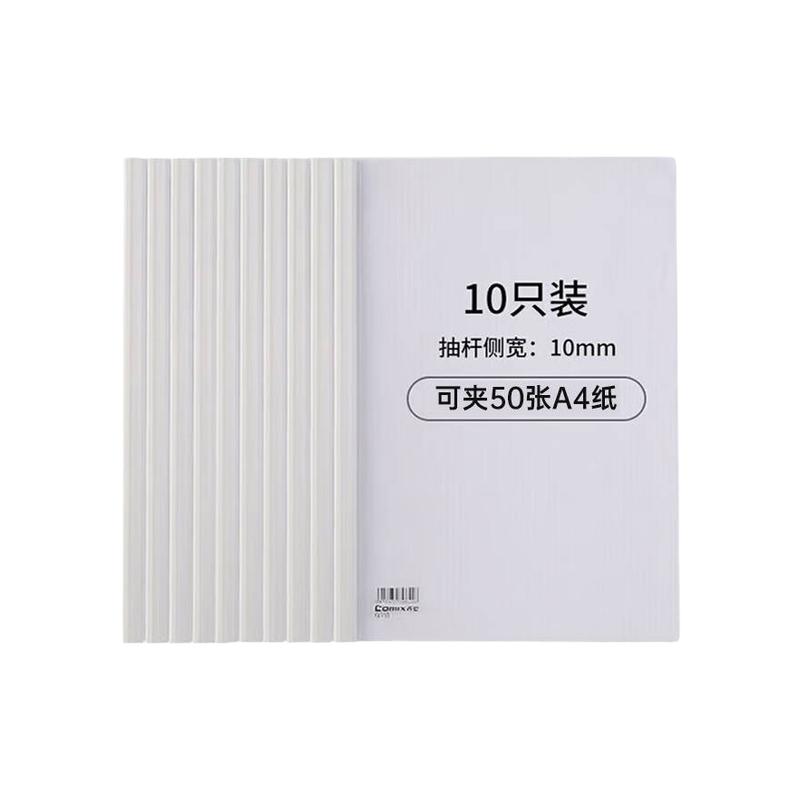 齐心(COMIX) 拉杆夹 A858 A4 14mm 10个/包 白色 最少起订量为包(单位:包)