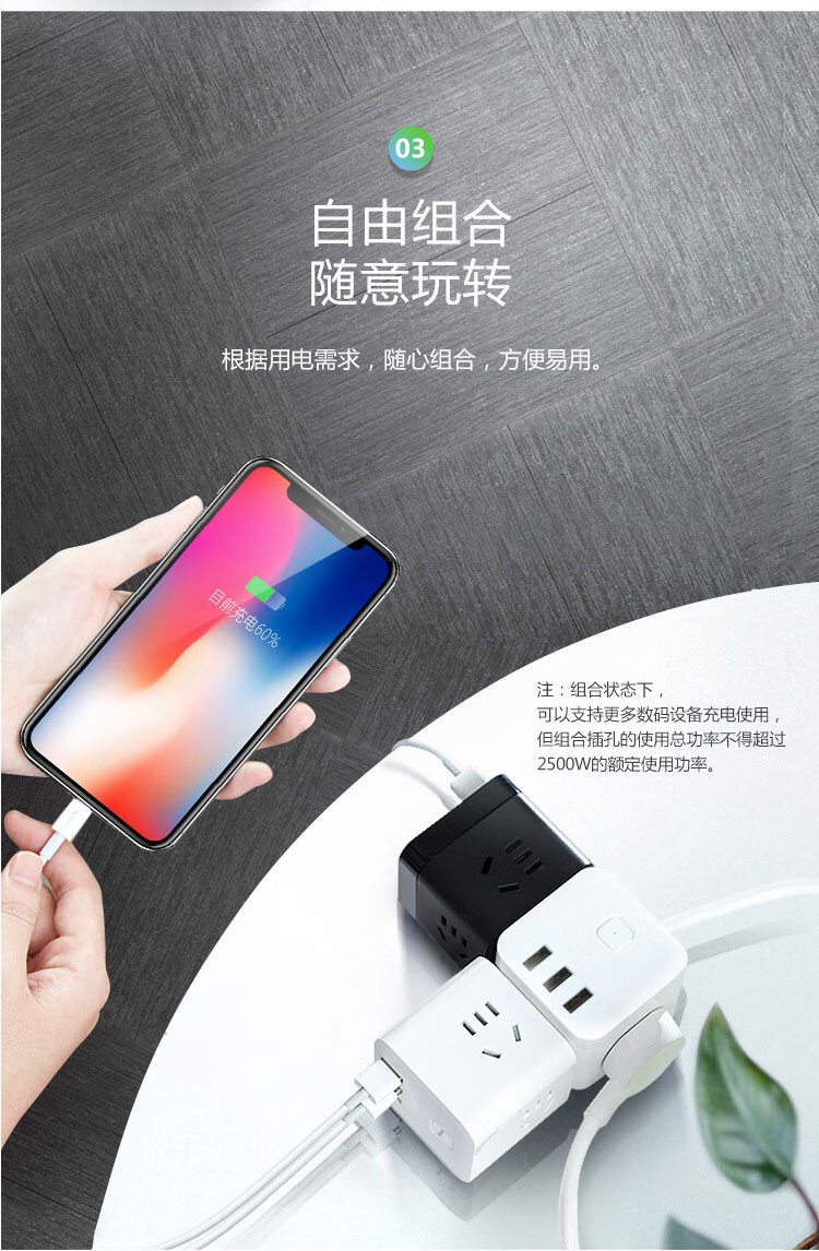 得力 (deli) 插座 18255 2米白色 6位组合孔新国标安全插座(单位:个)