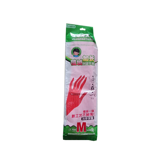 居家好太太 加长保洁手套 植绒一体 45cm 红色 不掉毛加厚保暖(单位:双)