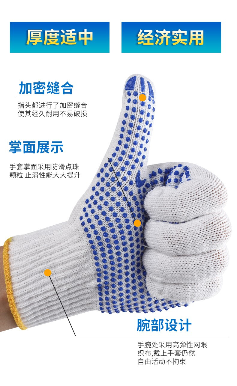 康利 加厚防滑点胶手套 600g 纯棉 (单位:双)