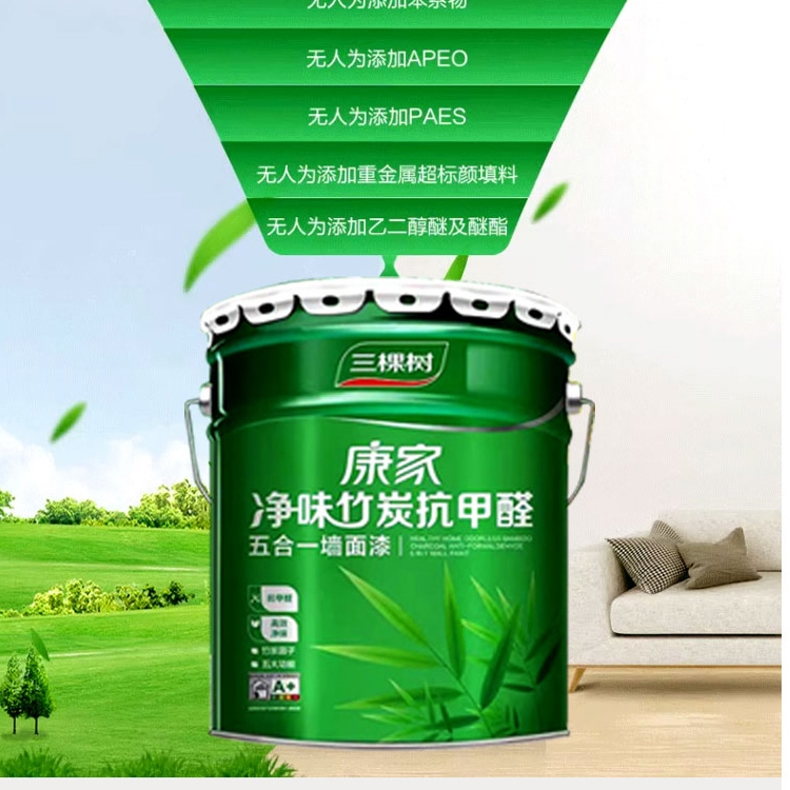 品牌:三棵树 功能:乳胶漆 型号:康家净味竹炭抗甲醛五合一 规格:15L