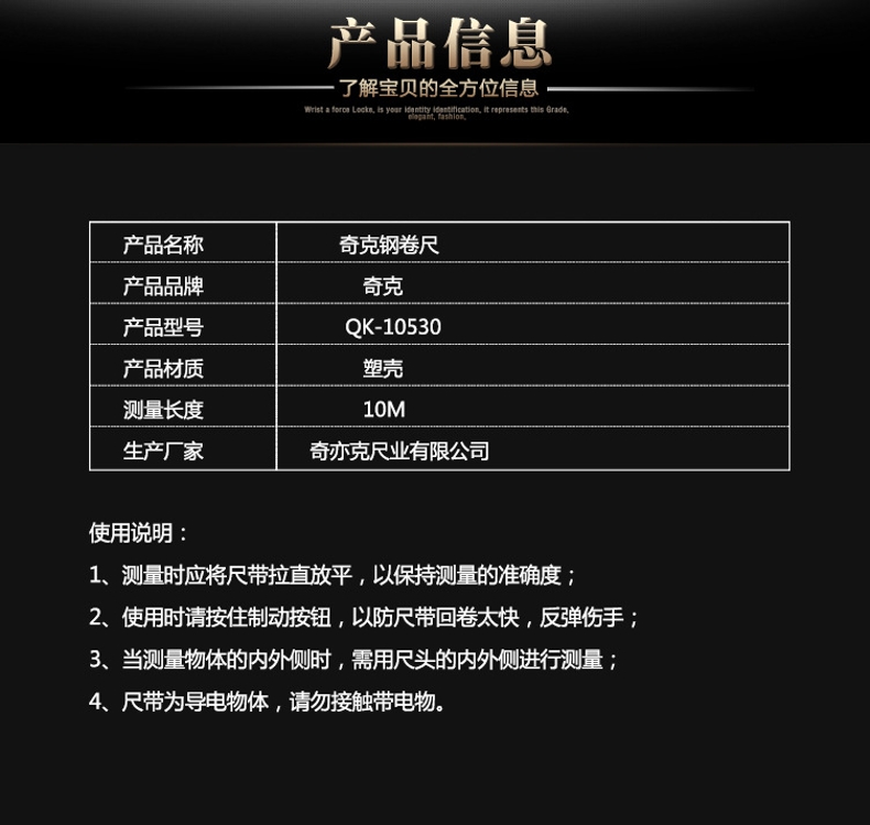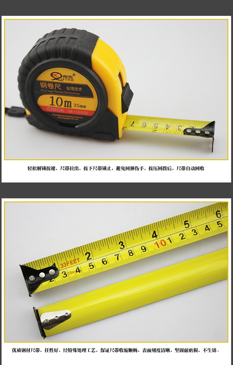 品牌:奇克(QI KE) 功能:卷尺 型号:QK-10530 规格:10m