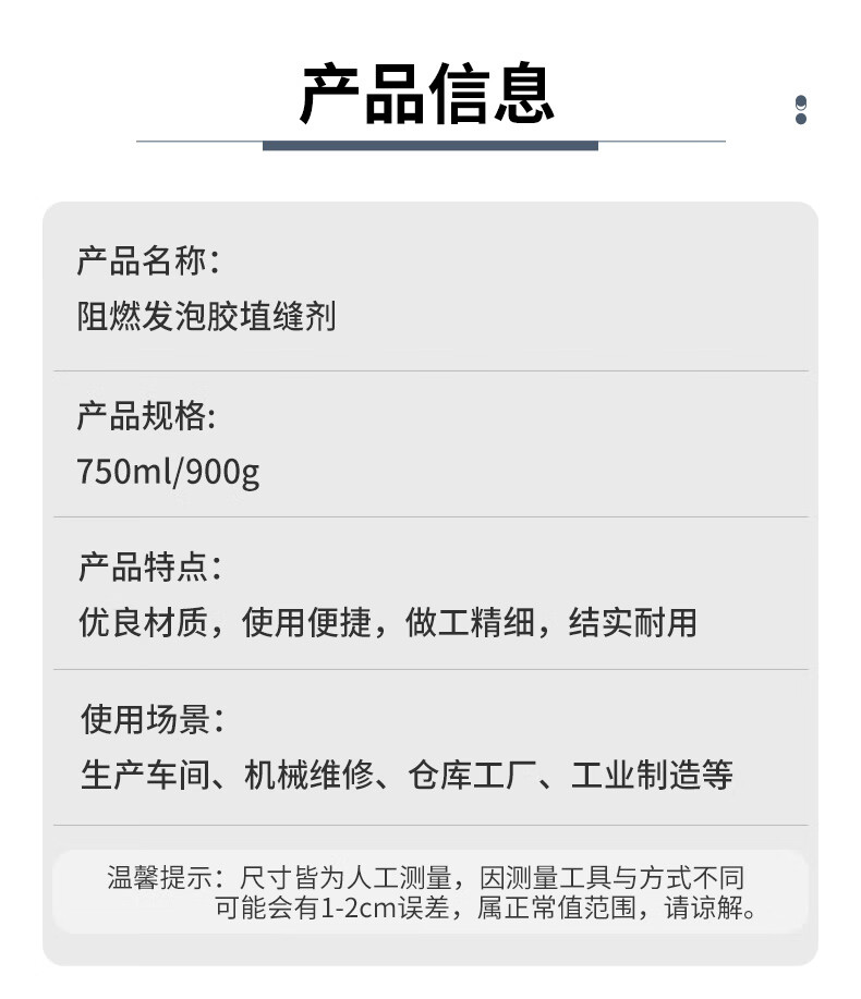 品牌:南大星(NANDAXING) 功能:阻燃发泡胶填缝剂 型号:750ml 规格:900g