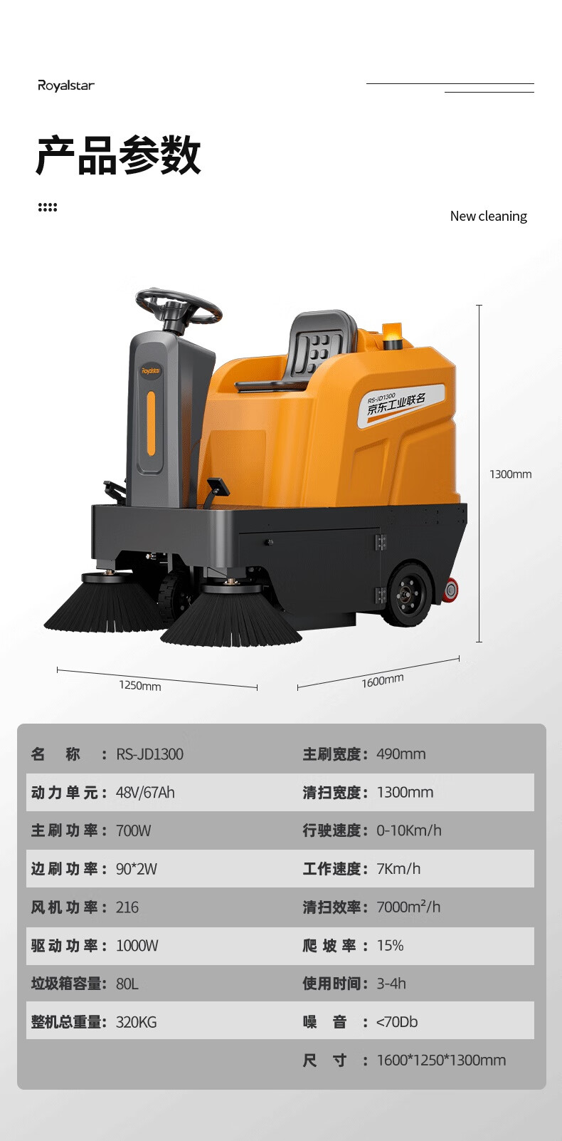 品牌:荣事达 功能:驾驶式扫地车 型号:RS-JD1300 规格:1600*1250*1300