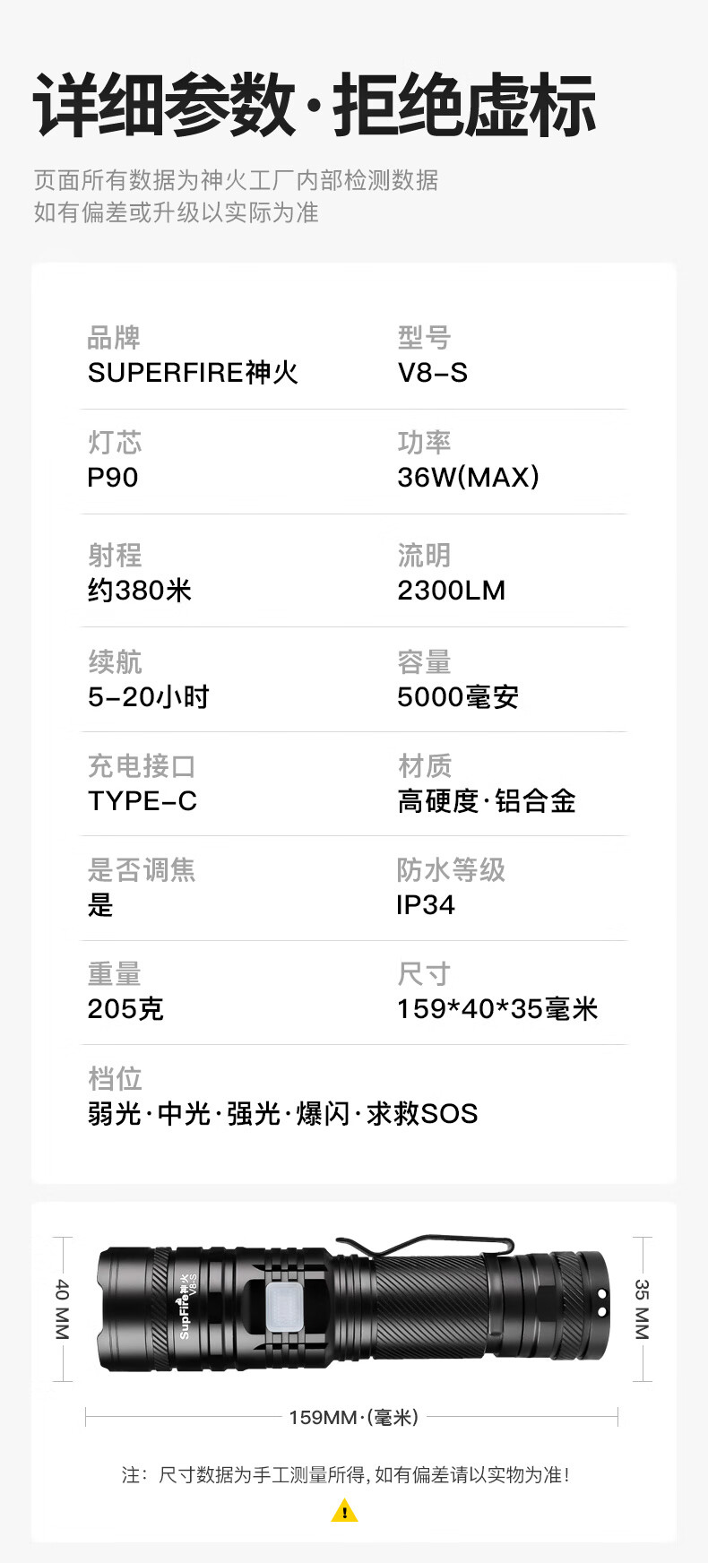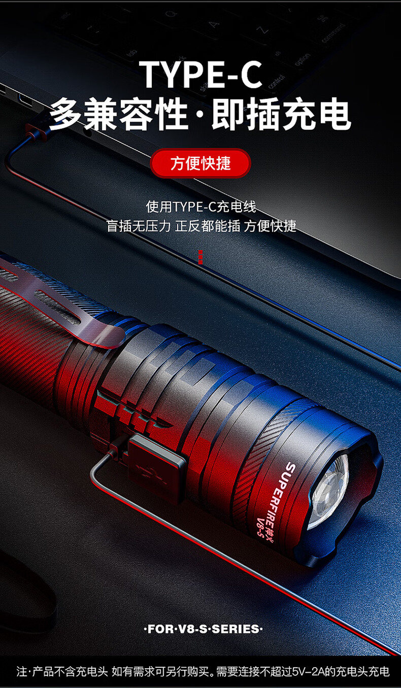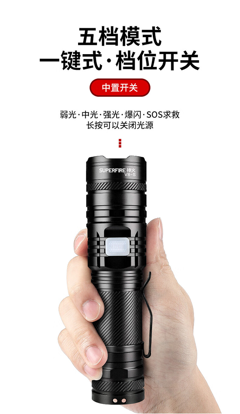 品牌:神火(SupFire) 功能:强光迷你手电筒 型号:V8-S 颜色:黑色