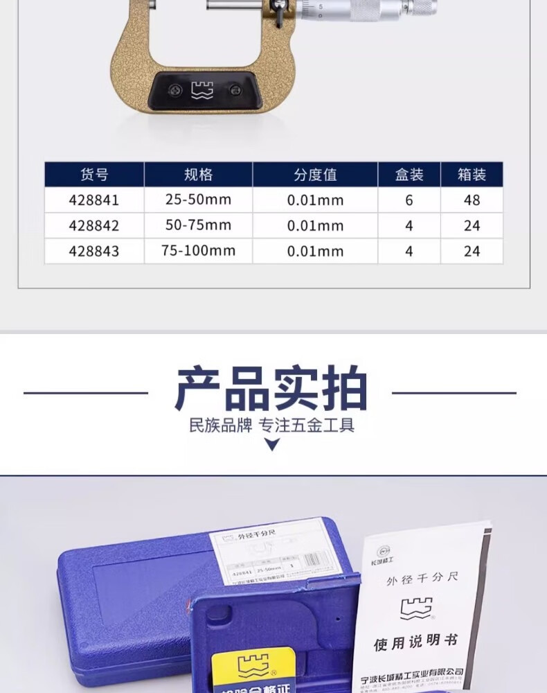品牌:长城精工 功能:外径千分尺 型号:428841 规格:25-50mm