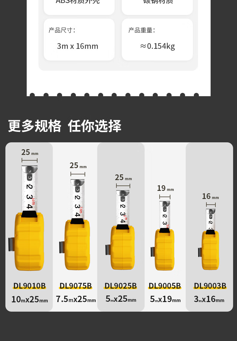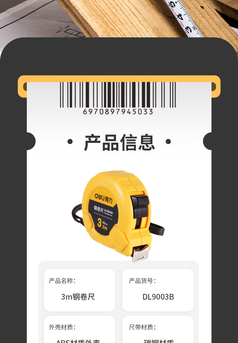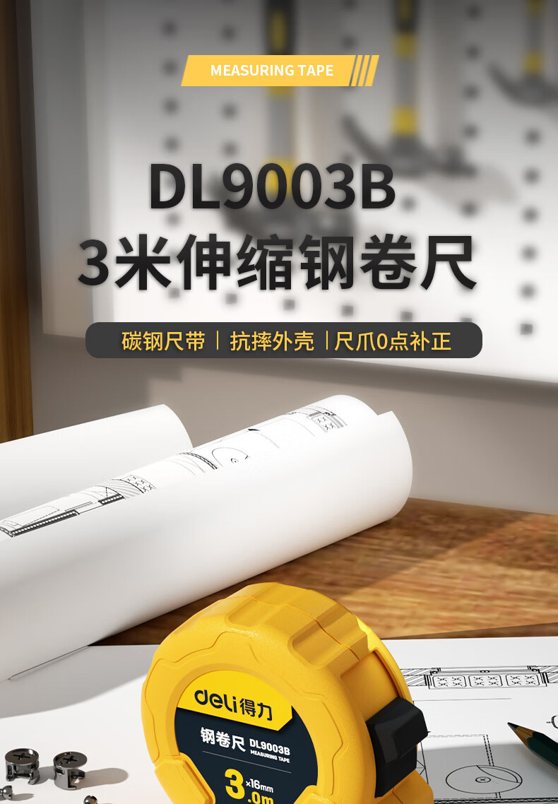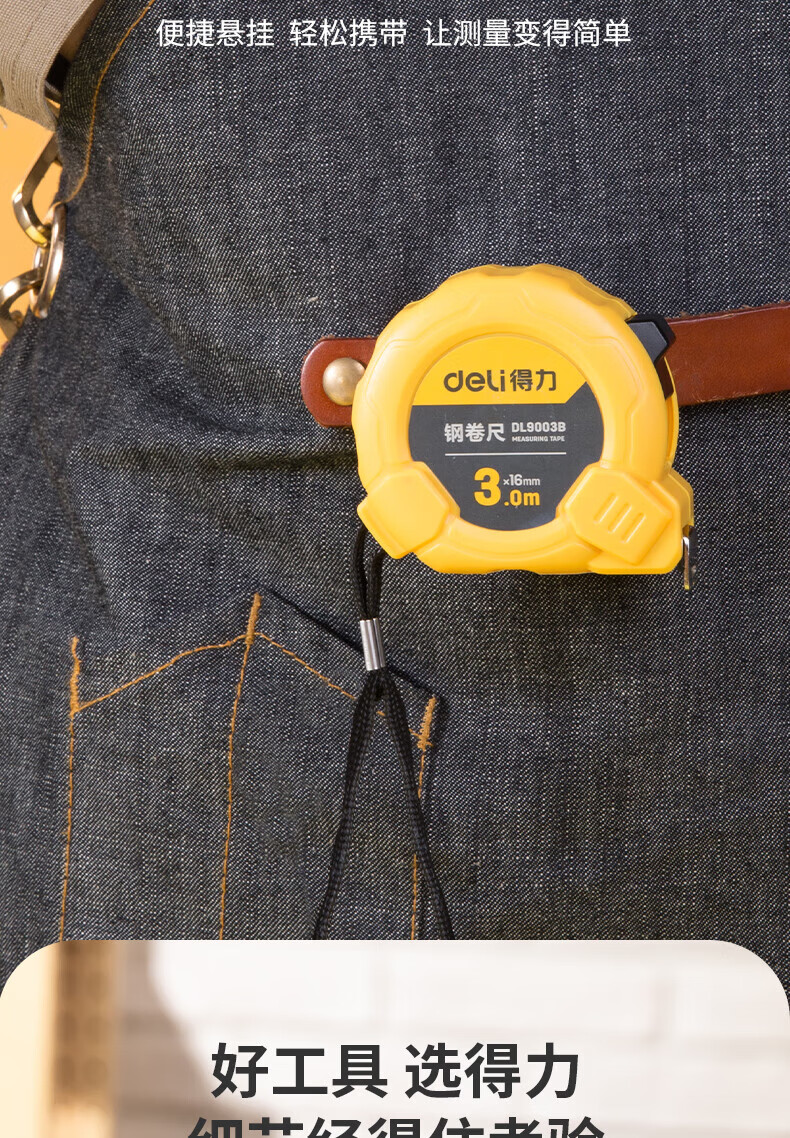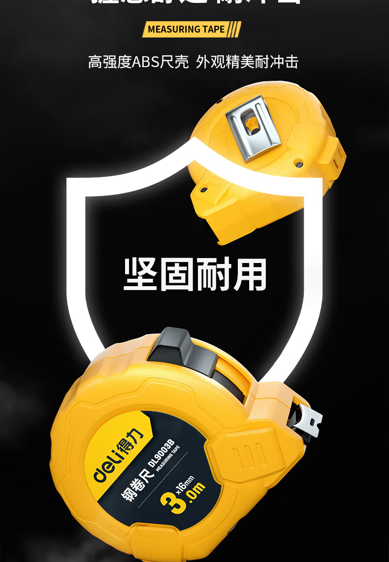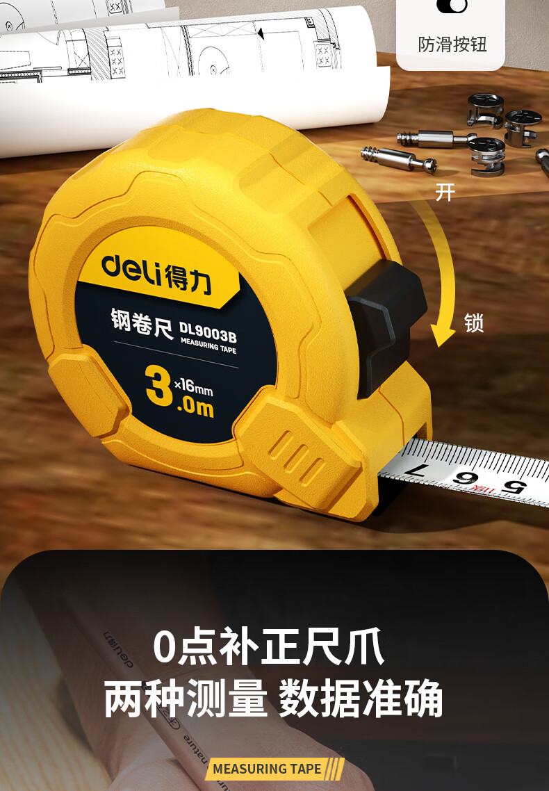 品牌:得力(deli) 功能:公制钢卷尺 型号:DL9003B 规格:3m*16mm