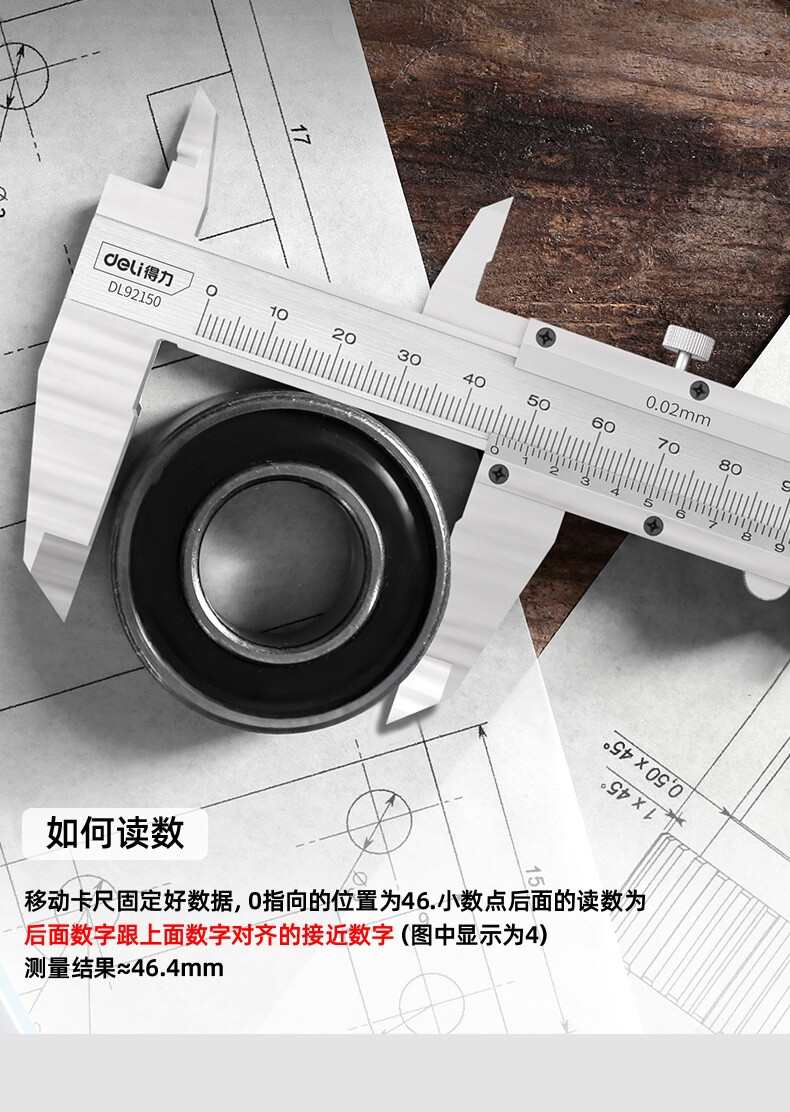 品牌:得力(deli) 功能:游标卡尺 型号:DL92300 规格:0-300mm