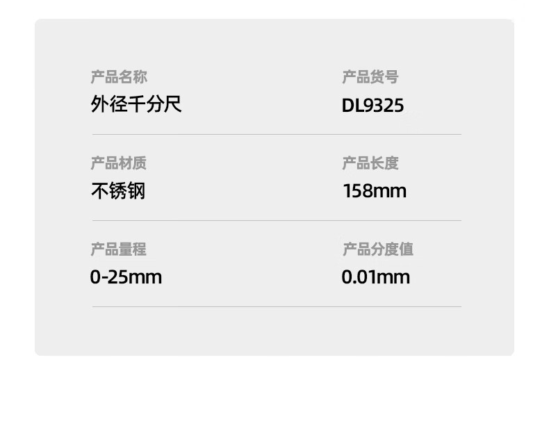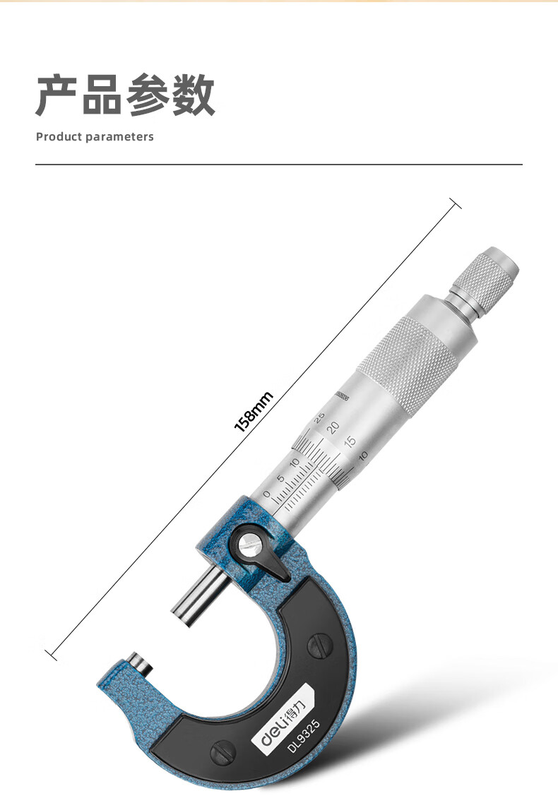 品牌:得力(deli) 功能:外径机械千分尺 型号:DL9325 规格:0-25mm