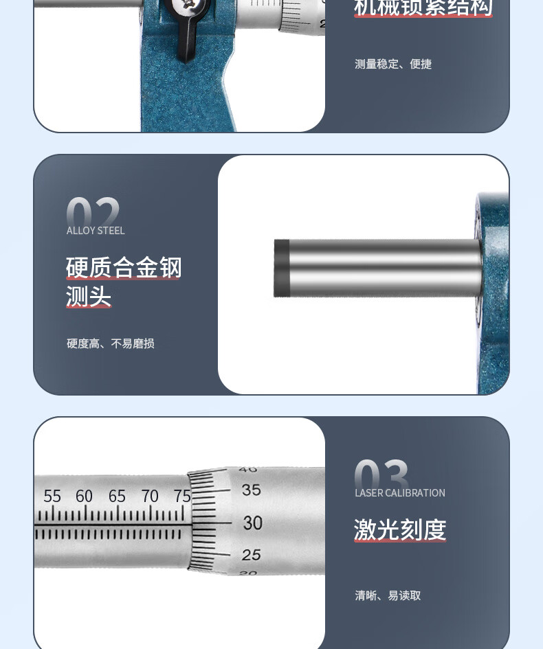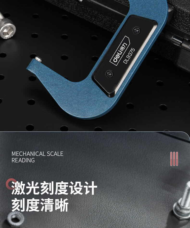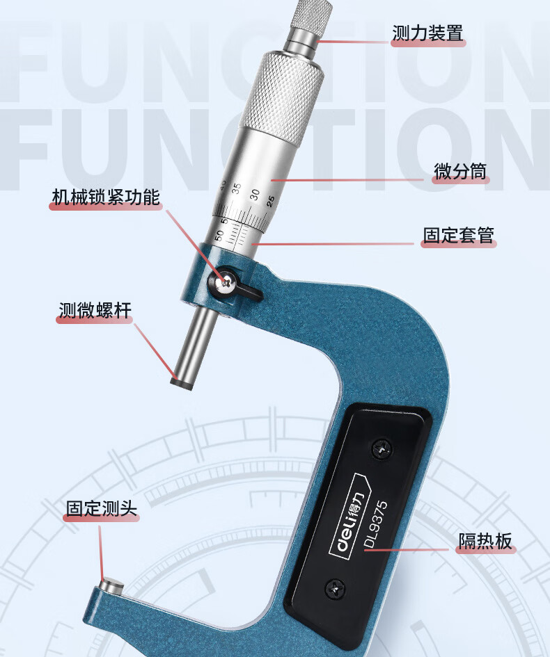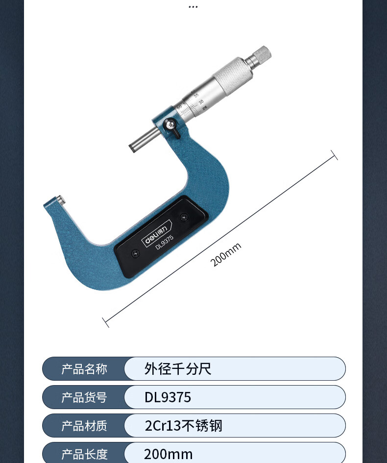 品牌:得力(deli) 功能:外径机械千分尺 型号:DL9375 规格:50-75mm