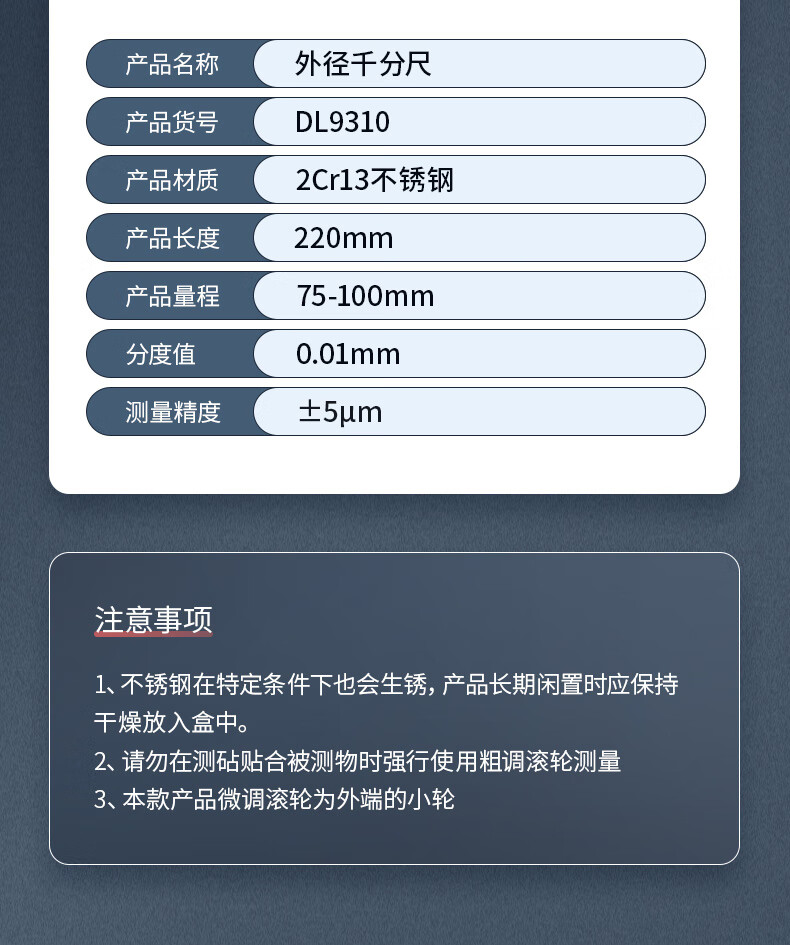 品牌:得力(deli) 功能:外径机械千分尺 型号:DL9310 规格:75-100mm