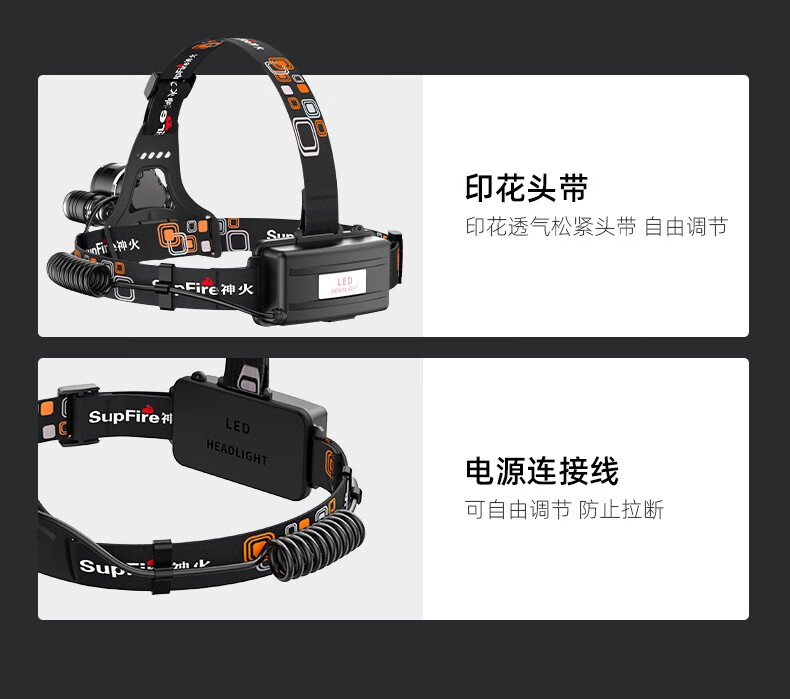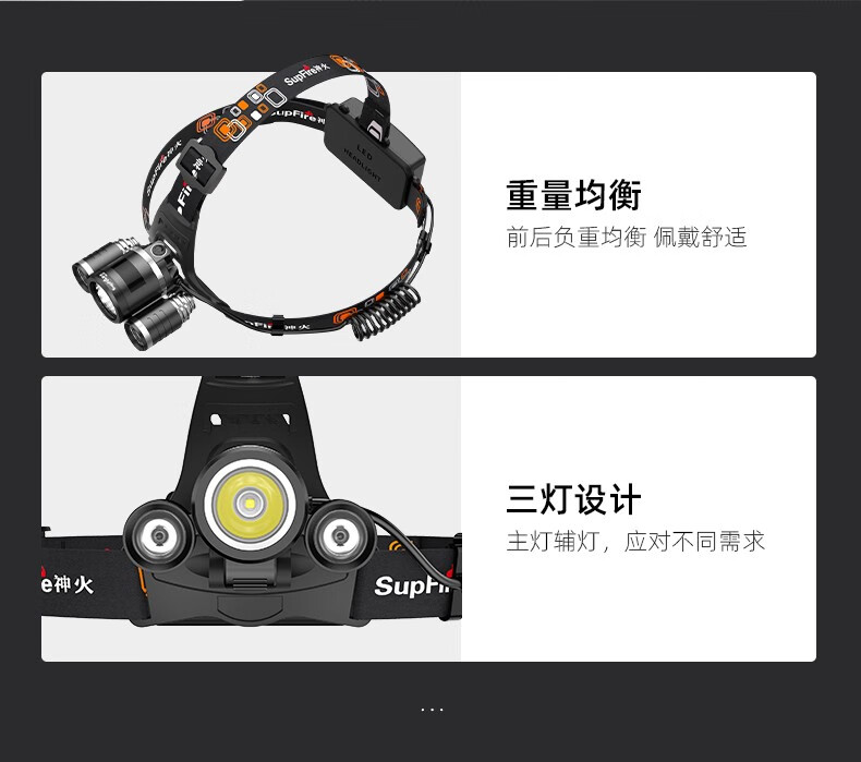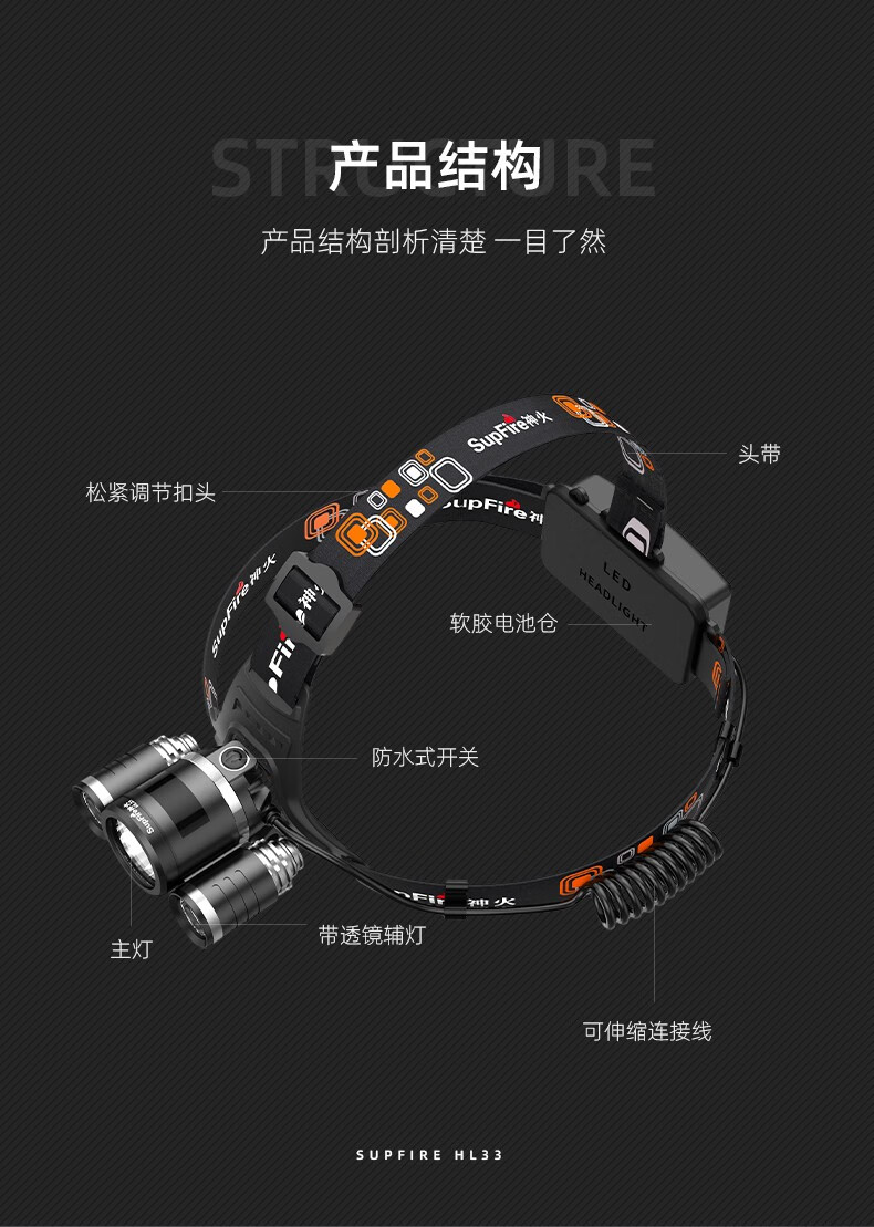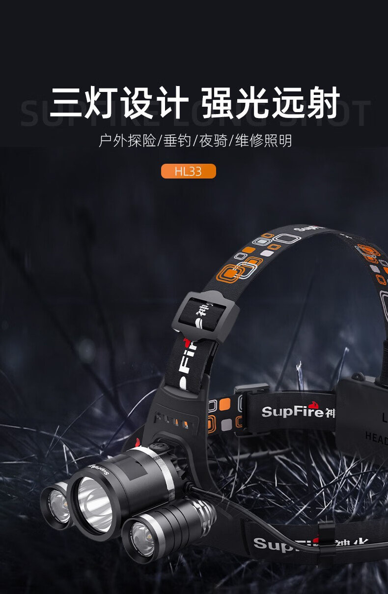 品牌:神火(SupFire) 功能:头戴灯 型号:HL33 规格:主灯10W 侧灯3W*2 含