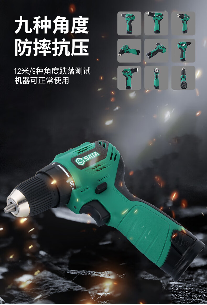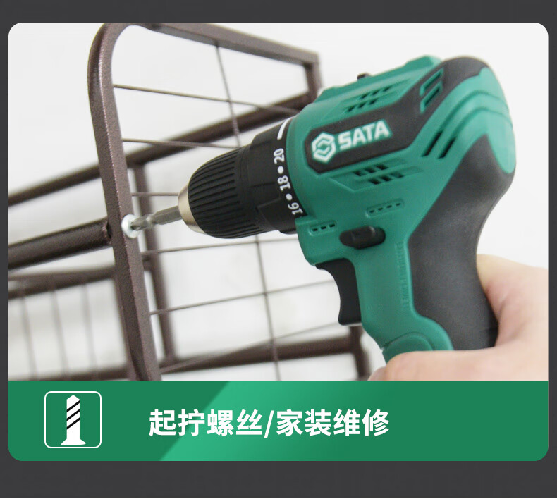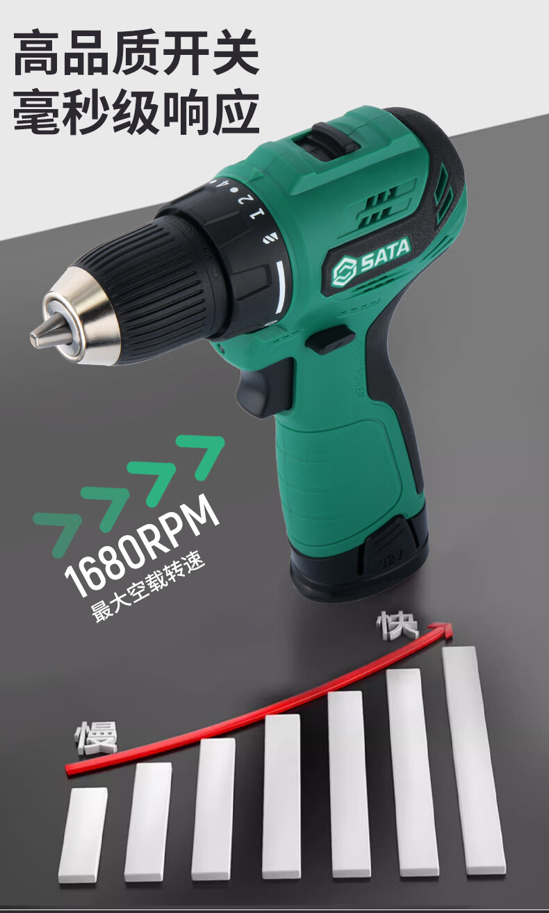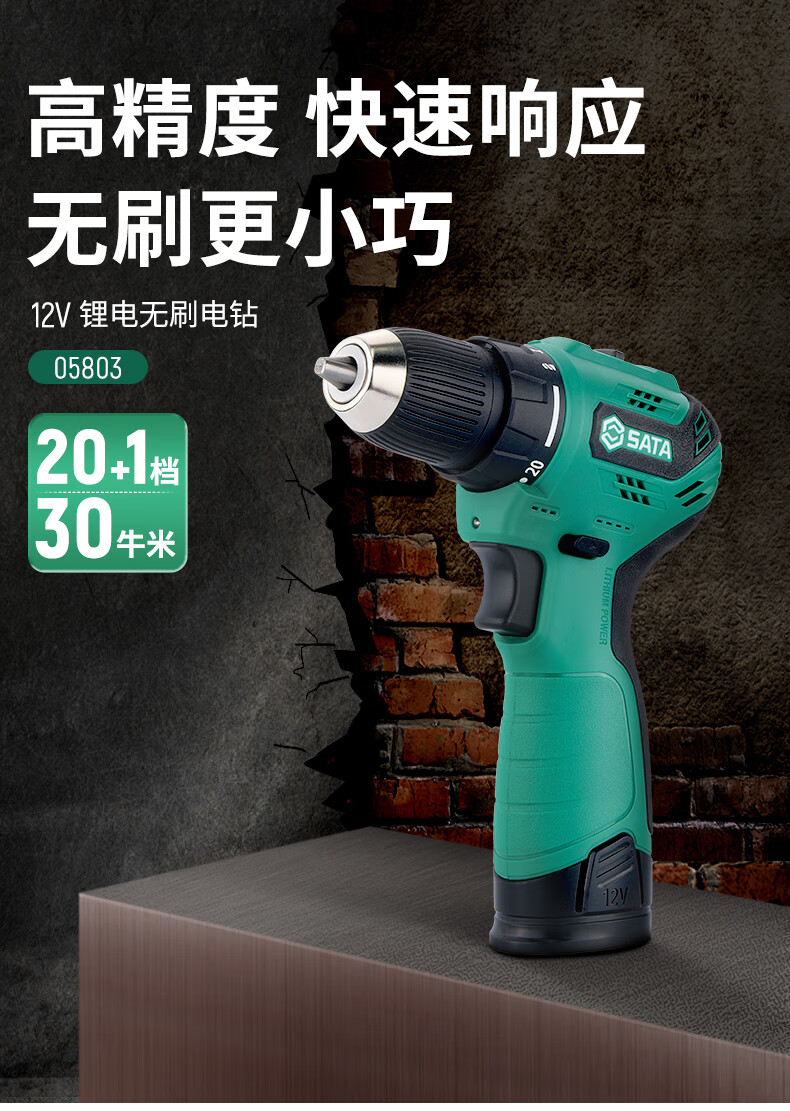 品牌:世达 (SATA) 功能:无刷锂电钻 型号:05803 规格:12V 一电一充