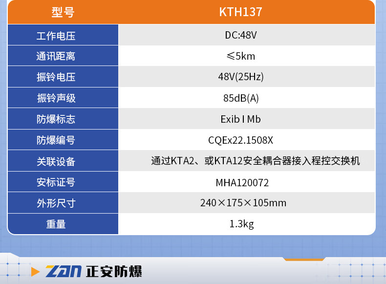 正安防爆(ZAN)矿用本安型数字电话机 KTH137 蓝色(单位:台)