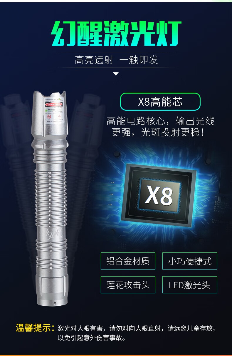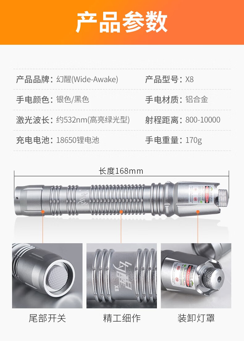 品牌:幻醒(WIDE AWAKE) 功能:激光手电筒 型号:X8 规格:8000m 远射