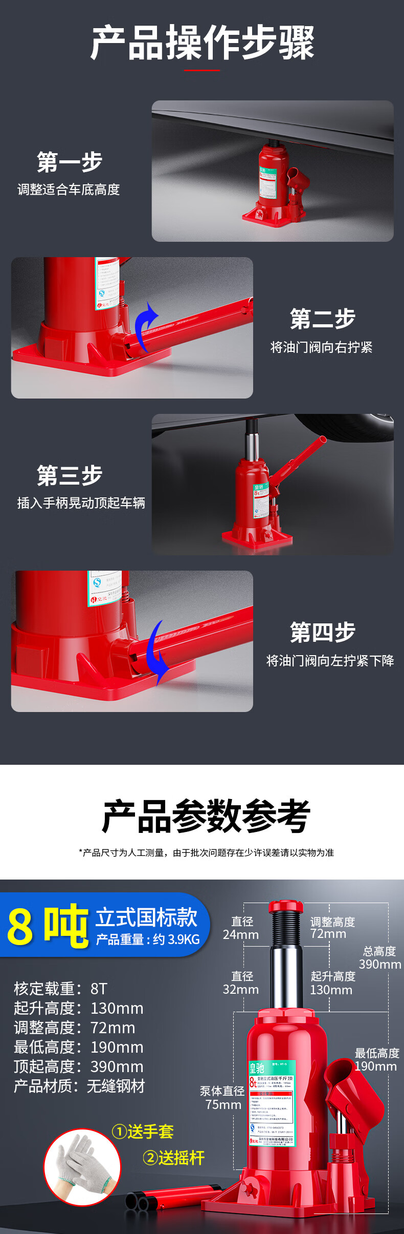 皇驰 立式油压千斤顶 8吨(单位:台)