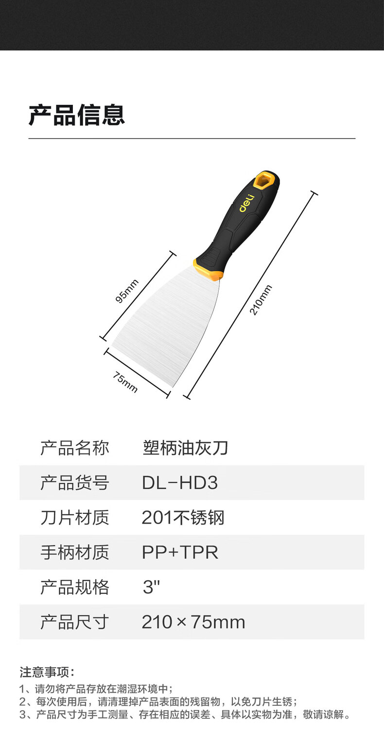 品牌:得力(deli) 功能:刮刀 型号:DL-HD3 规格:3寸