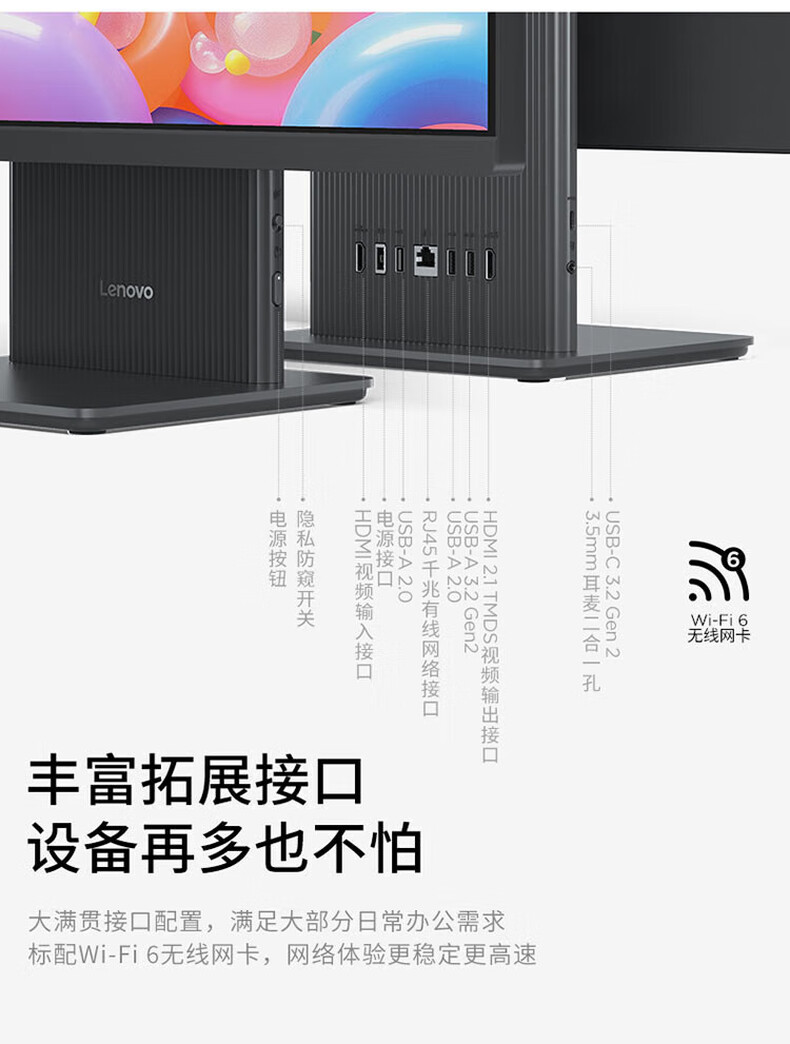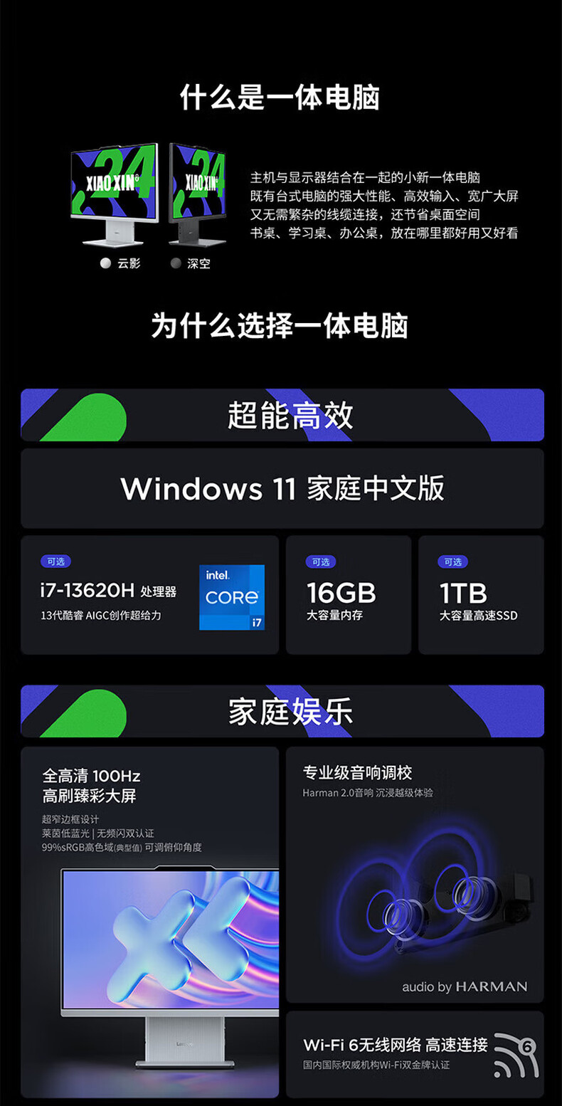 联想(Lenovo)台式机电脑一体机 小新Pro27 i7-13620H 32G 1T SSD 集显 Win11 27寸 深空灰(单位:台)