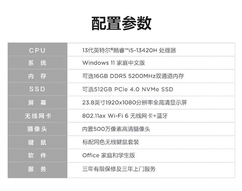 联想(Lenovo)一体机 小新24 i5-13420 16G 512G 集显 23.8英寸 win11 含键鼠(单位:套)