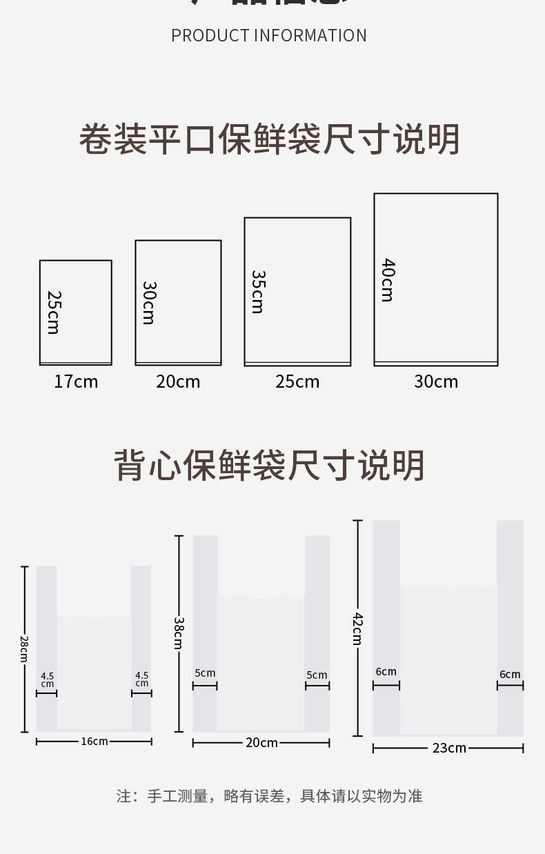 居家家 保鲜袋 28cm*25cm 背心式小号食品保鲜袋一次性加厚手撕袋(单位:卷)